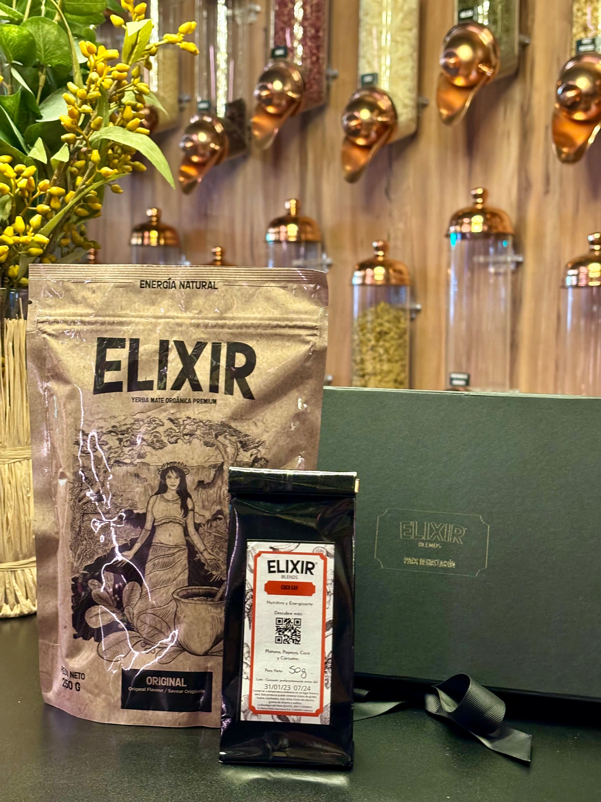 Una presentación ideal para regalar con nuestra perfecta selección de Elixir yerba mate orgánica y blend para tu agregar a tu mate. Infusiones de distintos sabores que te aportarán la vitalidad necesaria para empezar el día 🌿